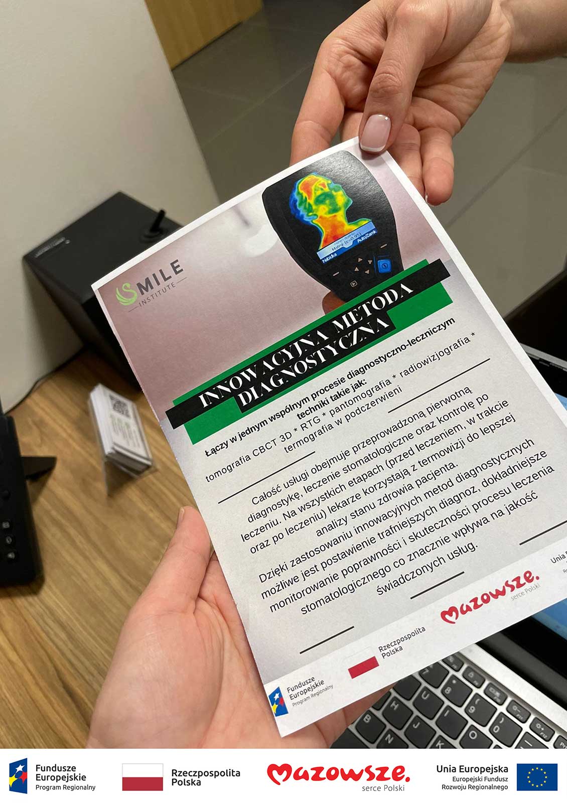 Całość usługi obejmuje przeprowadzoną pierwotną diagnostykę, leczenie stomatologiczne oraz kontrole po leczeniu. Na wszystkich etapach (przed leczeniem, w trakcie oraz po leczeniu) lekarze będą korzystać z termowizji do lepszej analizy stanu zdrowia pacjenta. Dzięki zastosowaniu innowacyjnych metod diagnostycznych możliwe jest postawienie trafniejszych diagnoz, dokładniejsze monitorowanie poprawności i skuteczności procesu leczenia stomatologicznego co znacznie wpływa na jakość świadczonych usług.